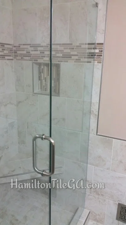 To complete the "full service" Jason made a visit to the house yesterday to coordinate the shower door installation. We use Chattahoochee Glass doors (the best) for all our glass doors and they really don't need to be supervised, but when you hire us to redo your shower you can expect a high level of attentiveness and when we do use sub contractors, we will be there to help. We don't just send a stranger to your house no matter how much we trust the company.