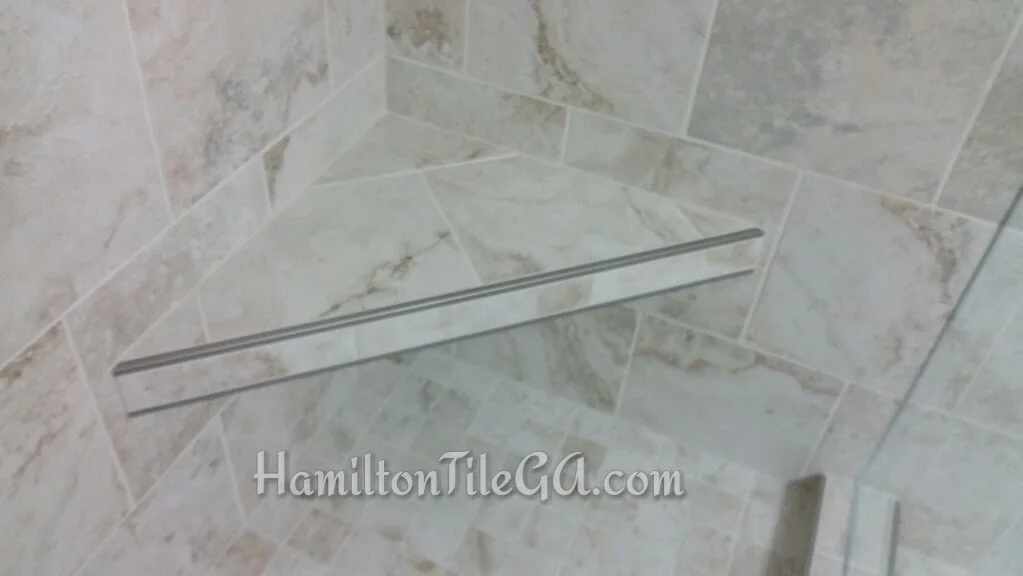 We ended up getting them set up correctly, with a full Schluter Shower with Quadec profiles and a tileable drain. This will never mold, mildew or leak. Notice our curbs are solid pieces with limited grout lines. Chattahooche Glass doors did a great job. Notice NO penetrations in the shower curb, so no worries of leaks!